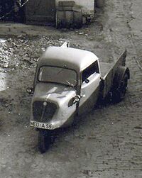 Irgendwann gehörte auch ein Auto zum Unternehmen. Laut Aussagen des Enkels soll es sich um einen „Goliath“ mit drei Rädern gehandelt haben (siehe Foto). Die Ehefrau transportierte damit Waren zu den Kunden.