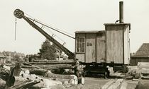 Bei dem Foto rechts (von Holger Koppelmann, ca. 1970) ist im Vordergrund die "Martha", das Motorboot des damaligen Kanalmeisters Westphal, zu sehen. Links sind 2 Kettenfähren und hinten links der 500Volt-Elektrokran, der für die Kohlebefüllung der fiskalischen Schiffe zuständig war, zu sehen.