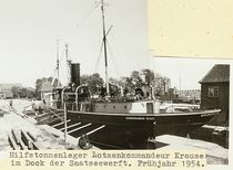 Der Hilfstonnenleger „Lotsenkommandeur Krause“, Nachfolger der „Mellum“ vor Ort, stammte ebenfalls noch vom Wilhelmshavener Seezeichenamt, wo er auch als Lotsenausbildungs- und Vermessungsschiff fungierte.