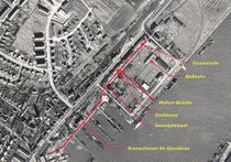 Anmerkung: Der Bauhof des früheren Wasserbauamtes Brunsbüttelkoog unterteilte sich in Bauhof und Schirrhof. Die Grenze war der Teil der Straße „Am Binnenhafen“, an der das Kanalmeistergebäude stand.