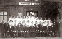 Recherchen haben ergeben, daß um ca. 1900 ein Rudolf Harbeck diese Gastwirtschaft sein Eigen nannte, ein Plan für eine Durchfahrt mit Stallungen und Reparatur des Wohnhauses aus dem Jahr 1908 (nach einem Brand-siehe Artikel rechts) und ein Foto bezeugen das.