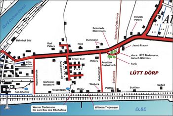Die folgenden Pläne geben eine Übersicht darüber, wo sich das „Dorf“ befand und wie es in die Fährstraße integriert war.