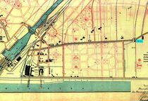 Das Alter der Pläne erklärt sich durch das Fehlen der Neuen Schleuse und den noch sehr schmalen Kanalquerschnitt, so wie auch die alte Bezeichnung Koogstraße für die spätere Fährstraße.