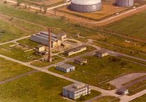 Als Standort wurde eine ausreichend große Fläche neben dem von 1950-1953 gebauten Tanklager Brunsbüttelkoog gewählt.