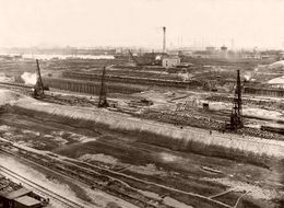 Bild:177-Pfahllager,29.01.1911.jpg|29.1.1911-Blick vom Dach des Kanallotsenhauses auf das Rundpfahllager
