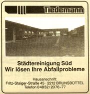 10:23, 8. Jul. 2024 Tiedemann Stadtreinigung 01 - Okt. 1988.jpg (Datei) 227 KB Uwe Möller Quelle:Bernd Schmidt 1