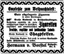 Hermann von Borstels erste Anmeldung erfolgte sehr wahrscheinlich am 01.04.1930 in der Festgestraße 5. Verkauft wurden Rauchwaren, Schokolade, Konfitüre, Leder- und Papierwaren außer Zeitschriften und Bücher.