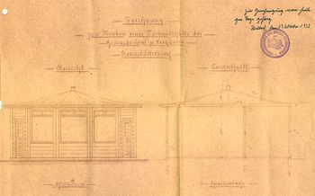 Das folgende Foto und der folgende Plan zeigen einen Kiosk, dessen Standort leider nicht bekannt ist, der aber auch von Hermann von Borstel in Auftrag gegeben wurde.