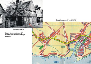 Die Norderstraße wurde ca. 1970 für eine Durchfahrt zu einem Neubaugebiet in Höhe der Hausnummer 21 geteilt, den Katharinenkrug.