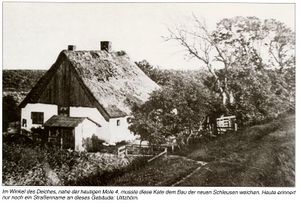 Nach dieser Kate, die dem Bau der Neuen Schleuse Brunsbüttel weichen mußte, ist das Gebiet benannt, wo das Freibad entstehen soll.