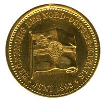 Das besondere an der Münze ist der Eintrag „Kaiser-Wilhelm-Kanal“. Alle anderen Münzen sind vor der Eröffnung geprägt, da man bis dahin davon ausging, daß der Kanal weiterhin Nord-Ostsee-Kanal heißen würde. Seine Majestät entschied aber anders und benannte das Jahrhundert-Bauwerk nach seinem Großvater - „Kaiser-Wilhelm-Kanal“.