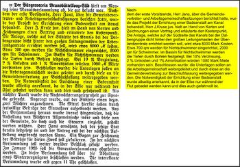 Die Enttäuschung war sehr groß, als man aus einem Schreiben der Gemeindeverwaltung entnahm, daß man eine Badeanstalt baut - allerdings auf der Nordseite.