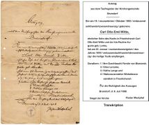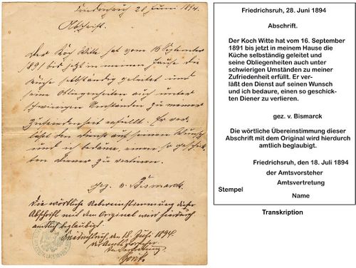 1894 verläßt Emil Witte auf eigenen Wunsch die Küche des Kanzlers und erhält von diesem ein abschließendes, positives Zeugnis.