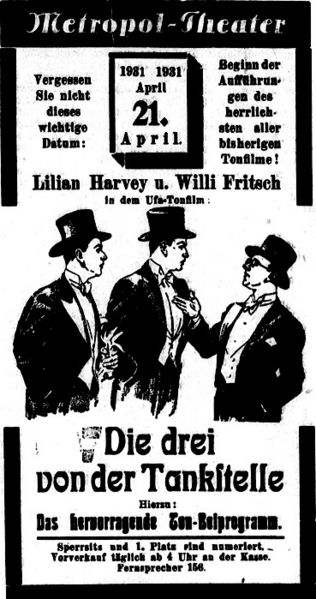 Datei:1931.04.20-Die drei von der Tankstelle.jpg