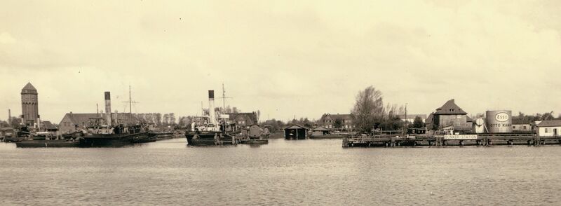 Datei:Betriebshafen mit Bagger Cyclop+Titan-1950er.jpg