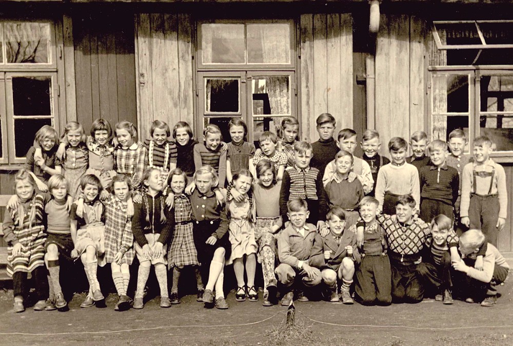 Datei:Schulklasse vor einer Baracke 1955.jpg