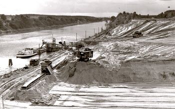 Dank des geringen Tiefgangs von 1,50m konnte die Schiffsladung, die hauptsächlich aus Steinen, Faschinen und Stackpfählen bestand, direkt am schadhaften Ufer gelöscht werden.