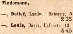 Der Landwirt Detlef Tiedemann (verstorben 1946) war ein Bruder des Louis Tiedemann (Hafenstr. 13 - verstorben 1958).