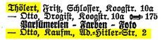 Im Adreßbuch von 1938 hatte Otto Thölert noch die Adresse „Adolf-Hitler-Straße 2“, die allerdings nach 1945 umgehend wieder in Kautzstraße umbenannt wurde.
