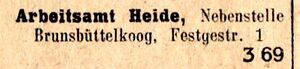 1940 - Ein Eintrag in einem Telefonbuch aus dem Jahr deutet auf eine Nebenstelle des Arbeitsamtes Heide in der Festgestraße 1 hin.