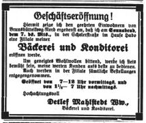 - Detlef Mahlstedt (Witwe) – Bäckerei und Konditorei (1931 - ? )
