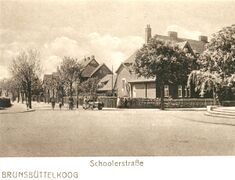 Auf dem Foto mit dem Pferdefuhrwerk ist links der Namenszug von Emil Sander, dem ersten, dort angesiedelten, Brunsbüttelkooger Photographen erkennbar (Läden im Koog-Koogstraße 81-84). Zwischen Haus Nr. 85 und 87 mündet die Scholerstraße in die Koogstraße.