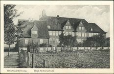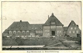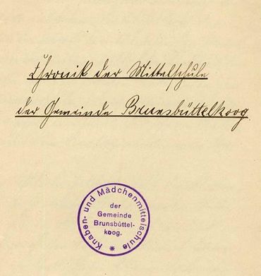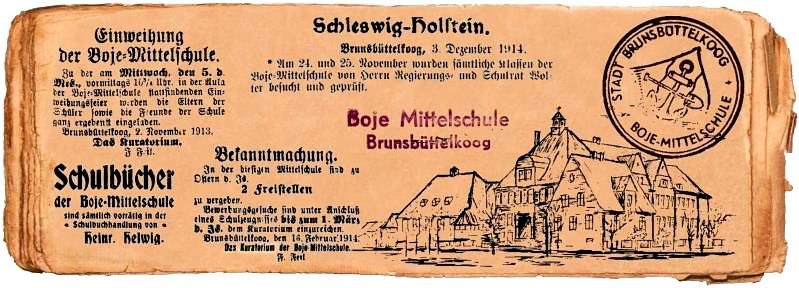 Eigenständige Mittelschulen gab es in Dithmarschen erst seit Beginn unseres Jahrhunderts. Die erste im Kreisgebiet, deren Bau am 28.10.1910 beschlossen wurde, war die am 20.04.1911 eröffnete „Knaben- und Mädchenmittelschule i. E. " der Gemeinde Brunsbüttelkoog.