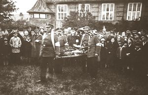 Der vaterländische Gedanke wurde gerade in dieser Zeit besonders gepflegt. „Mit Gott für Kaiser und Vaterland" hieß die Durchhalteparole, die von allen ernst genommen und beherzigt wurde. Dadurch war es möglich, daß auch der Unterricht ohne wesentliche Einschränkungen durchgeführt werden konnte. Selbst der Übergang aus dieser Zeit in die Weimarer Republik verlief ohne Störungen. Am 1. Juni 1921 wurden die Lehrer auf die neue preußische Verfassung vereidigt. Bemerkenswert sind jedoch die sinkenden Schülerzahlen ab 1918/19. In diesem Schuljahr besuchten 272 Kinder die Schule in sechs Klassen, 1923/24 - 200 Schüler, 1933/34 - 186 Schüler und 1938/39 - 127 Schüler, immer in sechs Klassen. Die Bestandsrückgänge dürften zu Lasten der Kriegszeit und der Nachkriegszeit gehen.