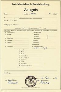 1966 wurden die bisherigen „Mittelschulen" des Landes Schleswig-Holsteins in „Realschulen" umbenannt. Seit dieser Zeit heißt die durch eine Abschlußprüfung erreichte Qualifikation „Realschulabschlußzeugnis".